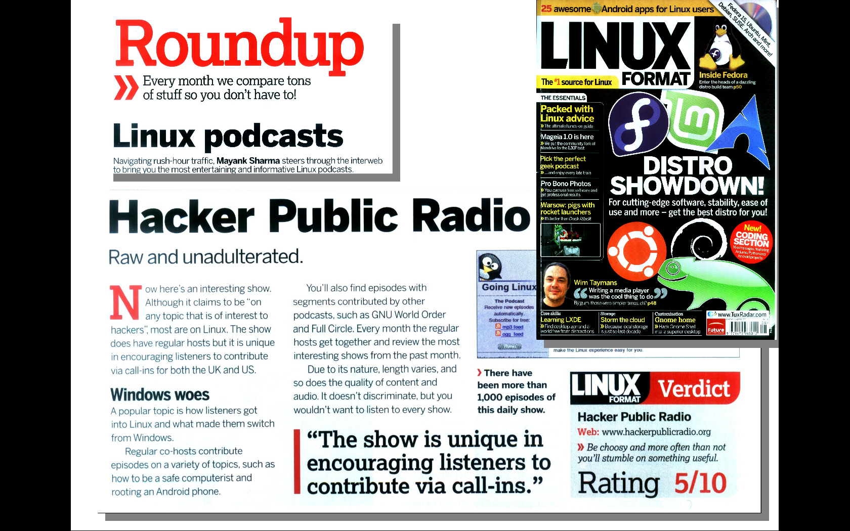 Hobby Public Radio (HPR) is an Internet Radio show (podcast) that releases shows every weekday Monday through Friday.